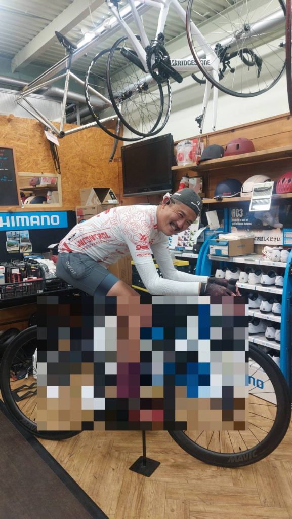 本日は、ニューバイクのハンドル、ステム、クランクの取付けが完了しており実際にまたがっての微調整!!