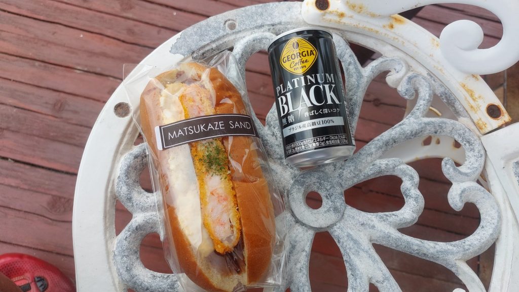 海老カツサンドとホットコーヒーを購入