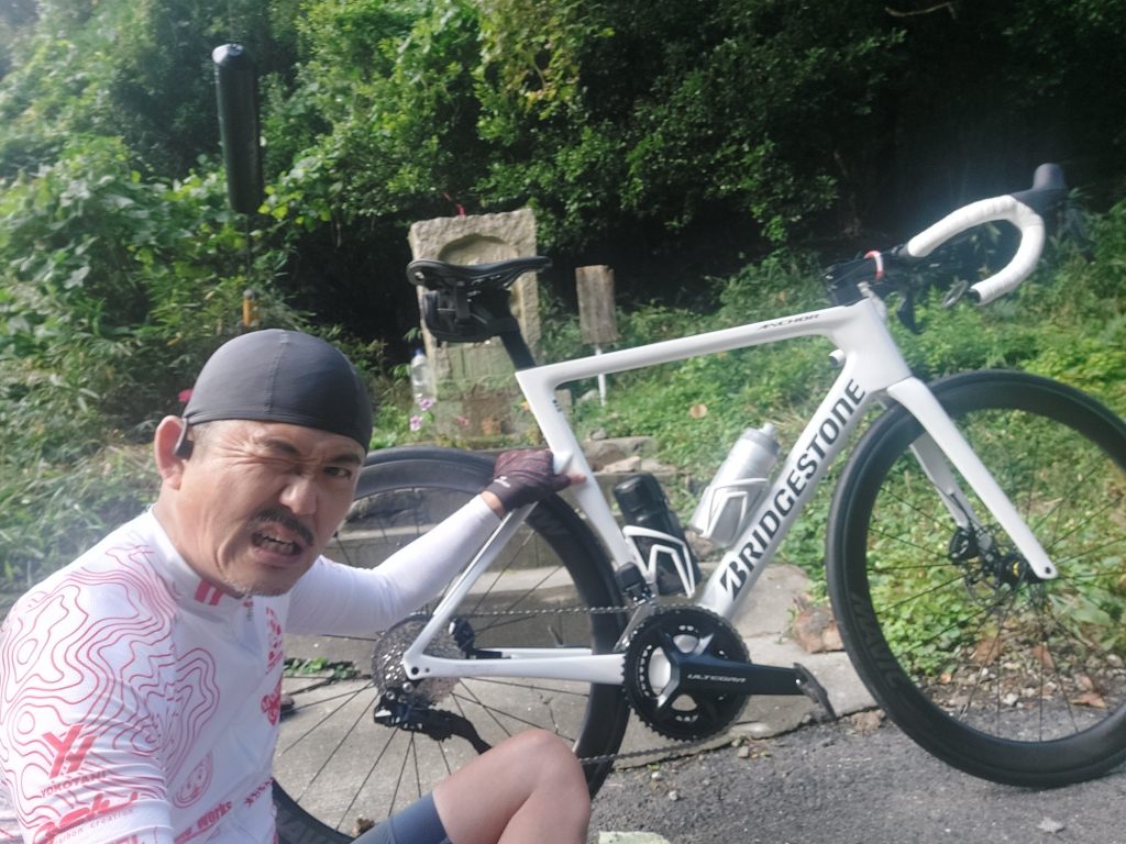 児島半島に入り一つ目の峠でダンシングで登りますが、「上手くダンシングができない?」という違和感。