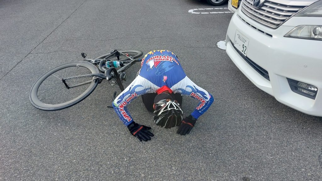 しかし、コーナーで前を走る福江さんがペダルヒットで体勢を崩す!!