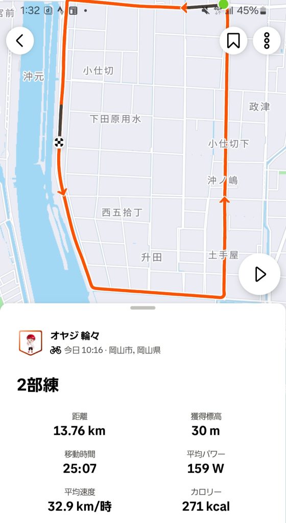 一周目:35km/hほどで巡行している。どうにか付いていけてるし輪々も短い距離ですが先頭で走っては肘クイで先頭交代をし、修造さん→田中さん→福江さん→輪々の並びで巡行!!