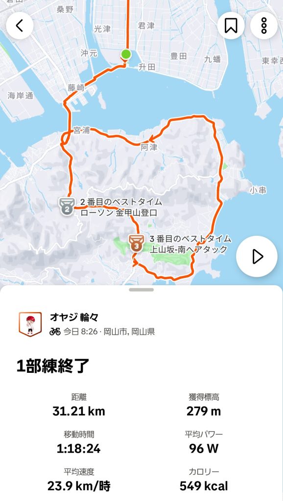 修造さん:とりあえず児島半島1周して福江さん合流後、六番周回練習にしようか!!