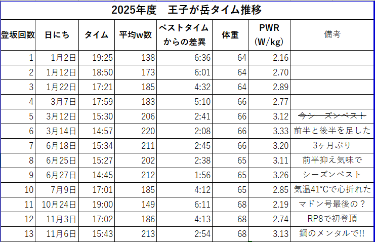 実際に、輪々が王子が岳のベストタイムを狙って頑張ってとトレーニングしていた時は、ほぼ毎日、退社後に全力で登ってましたが、「またあの地獄の苦しみ」を味わうことになるのか~(´;ω;`)ウゥゥ