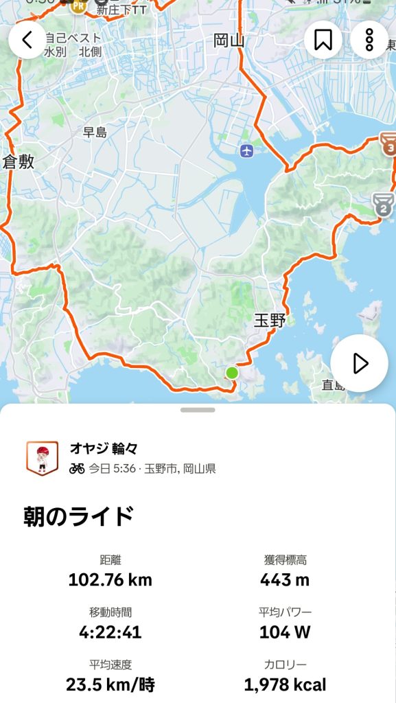 輪:なんか凄く楽しいの~(*´▽`*) まだまだ乗っていたい~(*´▽`*) 脚も全然余裕だし~(*´▽`*) ポタリングで児島半島グルッと周って帰ろうかしらね~~(*´▽`*)