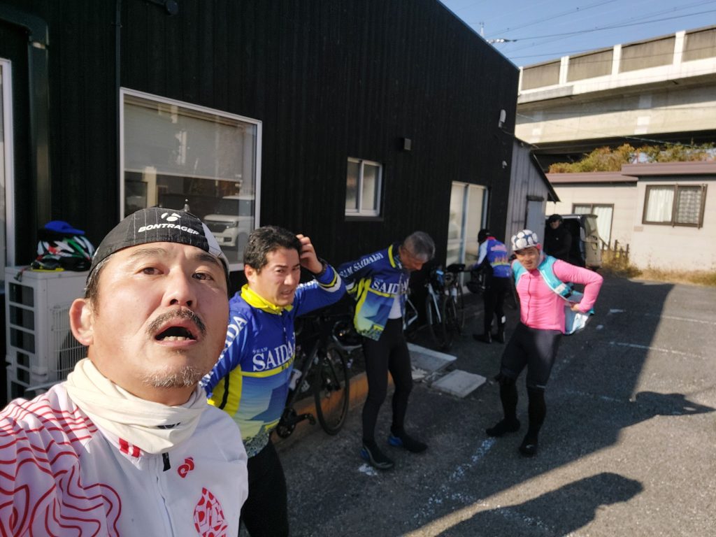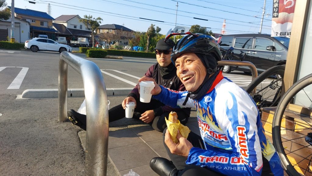 4人共にパンを購入したら「近くのコンビニでコーヒー購入してパンを食べよう!!」で、コンビニ向かおうとしたら、遠くから「お~い!!」と手を振る二人のローディーがこちらに向かってきます!!