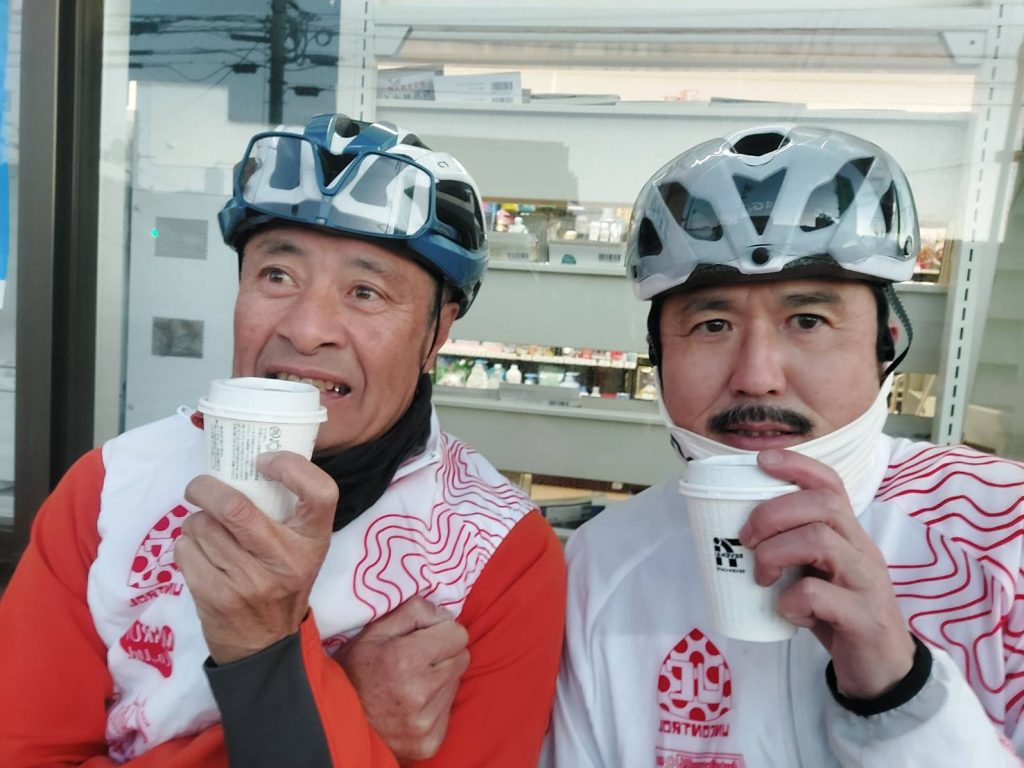 ジジイ2人が肩を寄せ合ってホットコーヒーを飲みますが、