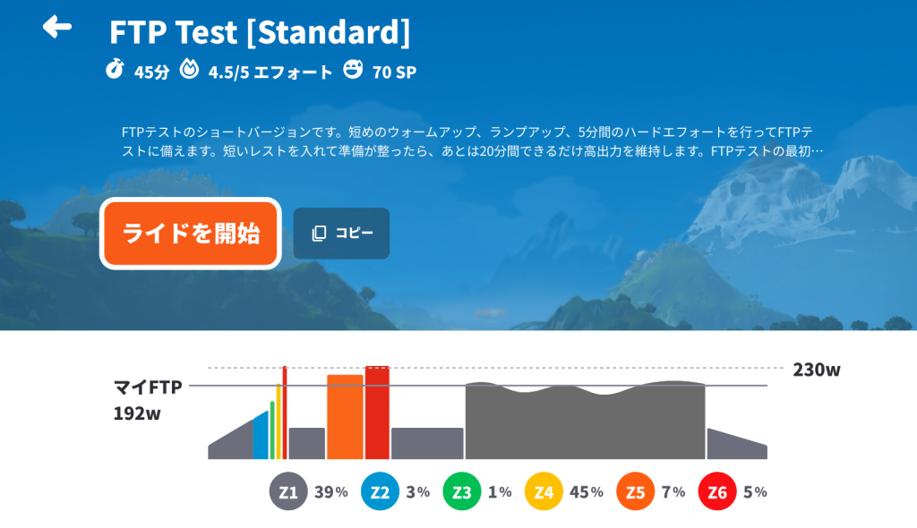 PCのスイッチを入れてズイフトを立ち上げ、FTPテストは4種類あるのですが、これに決定。