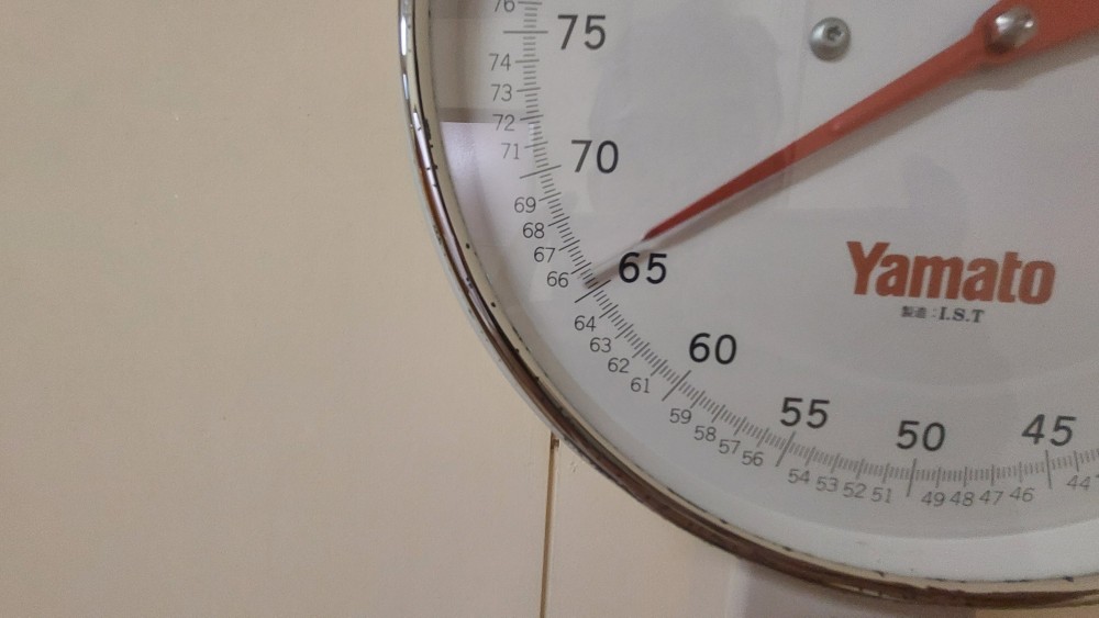 しかし残業で自転車に乗れなかった日は会社の広いお風呂に入るんですが、そこに体重計があって体重を計ったんですけど、