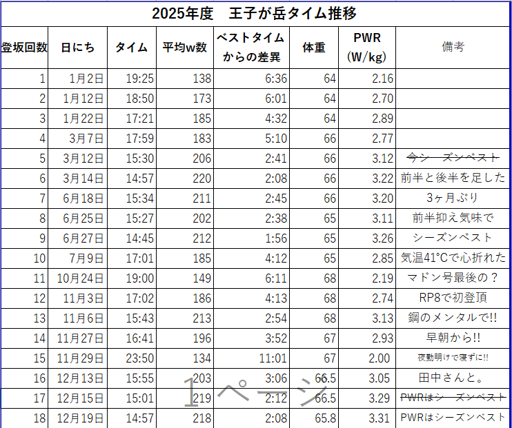 PWRは3.31w/kgでシーズンベスト~~~!!(⑉>ᴗ<ノノ゙✩:+✧︎⋆パチパチ