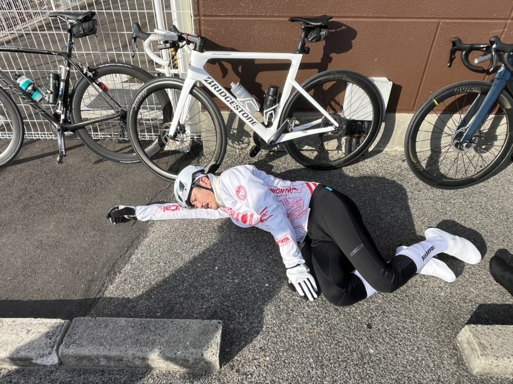 頭を下げずシッカリ修造さんの後輪を見てピッタリ付けてどうにか走り切って、本日、2回目のコンビニ休憩………( っ゚、。)っパタッ