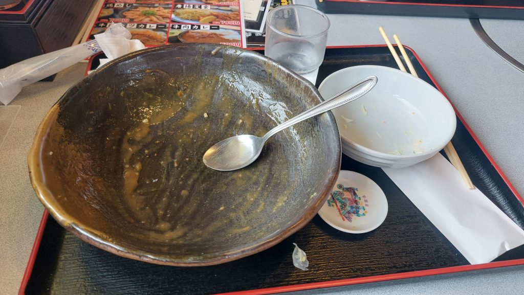 無言でカレーを口にして、カツも頂く。