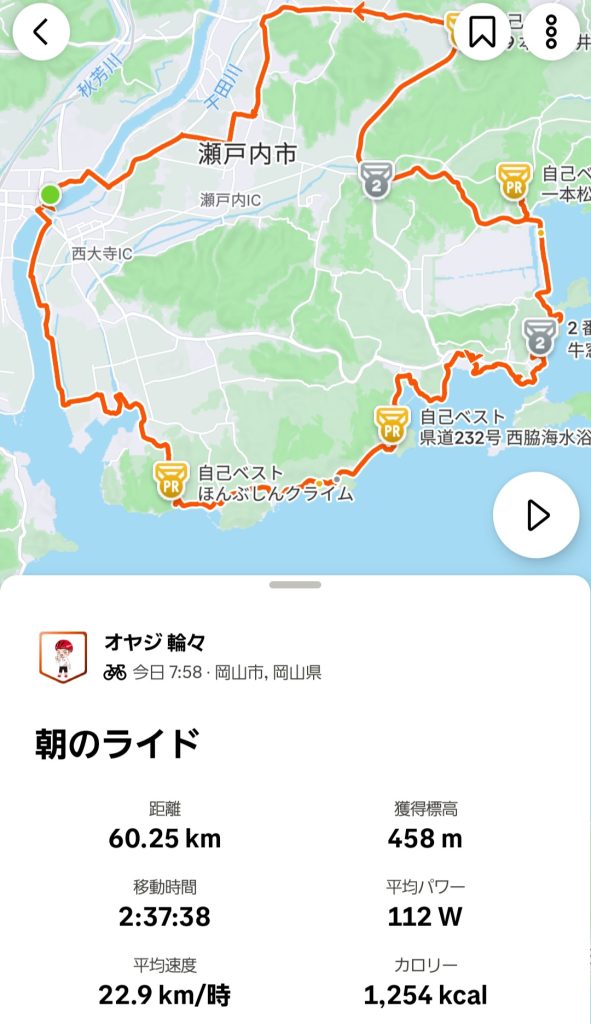 約28km休憩なしにアップダウンのコースを全力で走って牛窓のローソンで本日、初めてのトイレ休憩