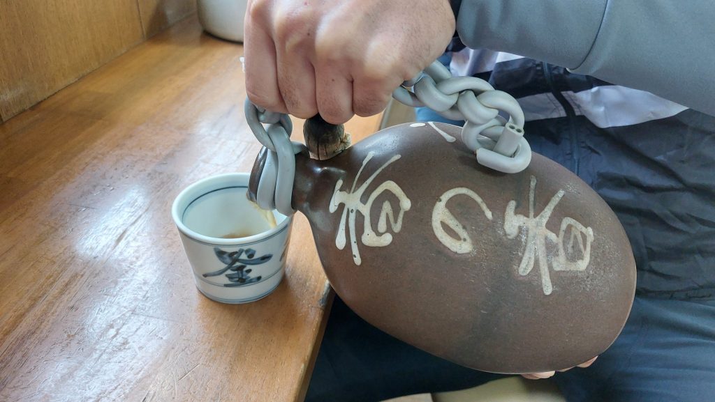 まず、席に座ったら大きな徳利に熱々のお出汁が入ったものが運ばれます。