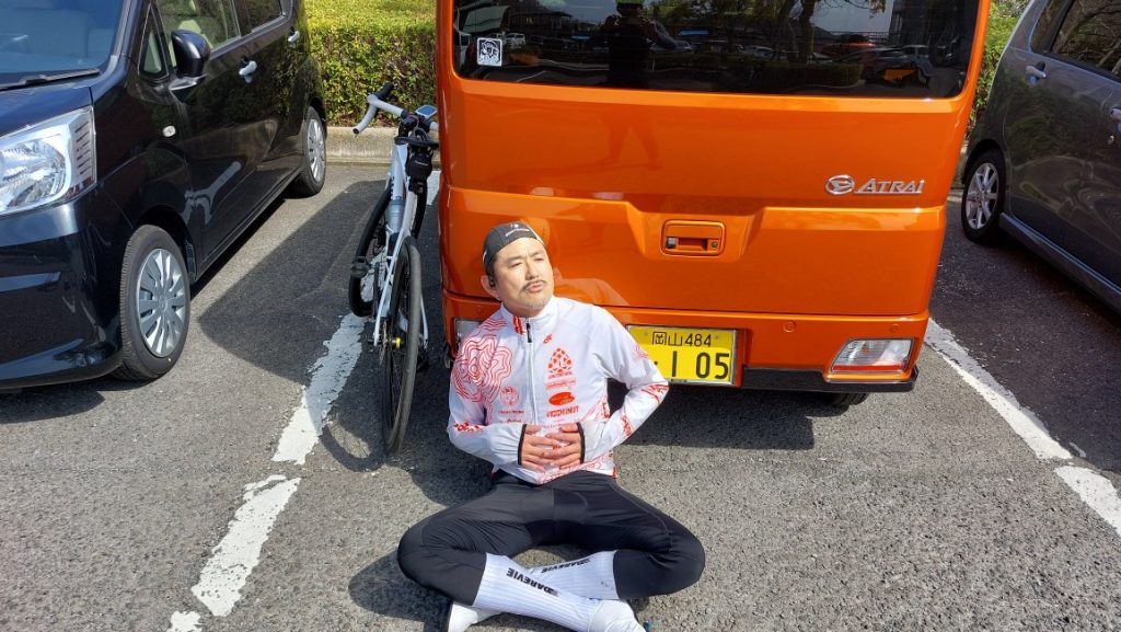先日の灘崎クリテリウムレースで調子に乗ってB決勝で出場して周回遅れにされたポンコツがっ!!